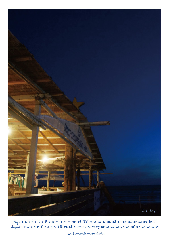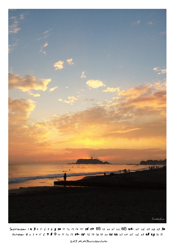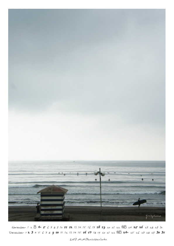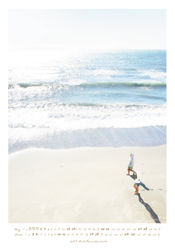 湘南各地で撮影した色々な表情のビーチサイドの写真7枚を2ヶ月1枚+表紙のカレンダーに仕立てました。手触りのよいすこし厚めでマットな紙を使っています。